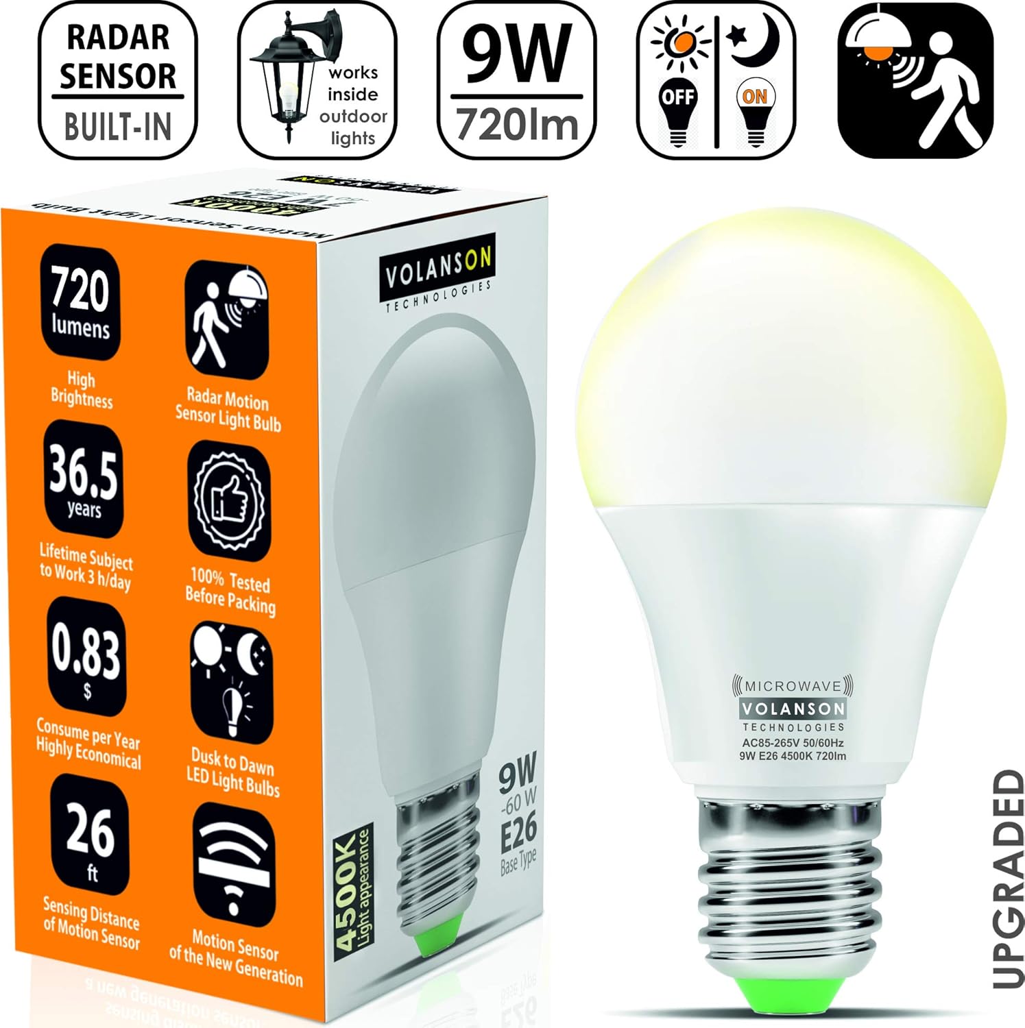 The ge led+ motion sensor light (indoor) stays on at 50% brightness level from dusk to dawn and switches to 100% illumination level for 3 minutes when motion is detected. Modern led vanity light bathroom lighting wall fixture mirror front lamp 6500k. The illumination is high but the light is a warm white which is not blinding. It uses very low power so it is cost effective and reliable for many years. Looking for a specific type of bulb?